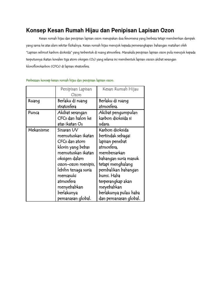 Konsep Kesan Rumah Hijau Dan Penipisan Lapisan Ozon Pdf