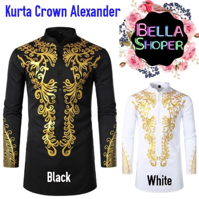 Bella Sherwani Jippa Kurta Alexander Baju Raya Lelaki Melayu Men Man Black Gold White Muslim Bollywood India Floral Shopee Malaysia
